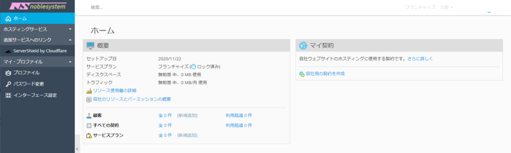 コントロールパネルにログイン11月 22, 2020 https://www.noble-system.com:8443/login_up.php ユーザー名とパスワードを入力する コントロールパネルのダッシュボード 契約者数などが表示されている。 Posted by admin